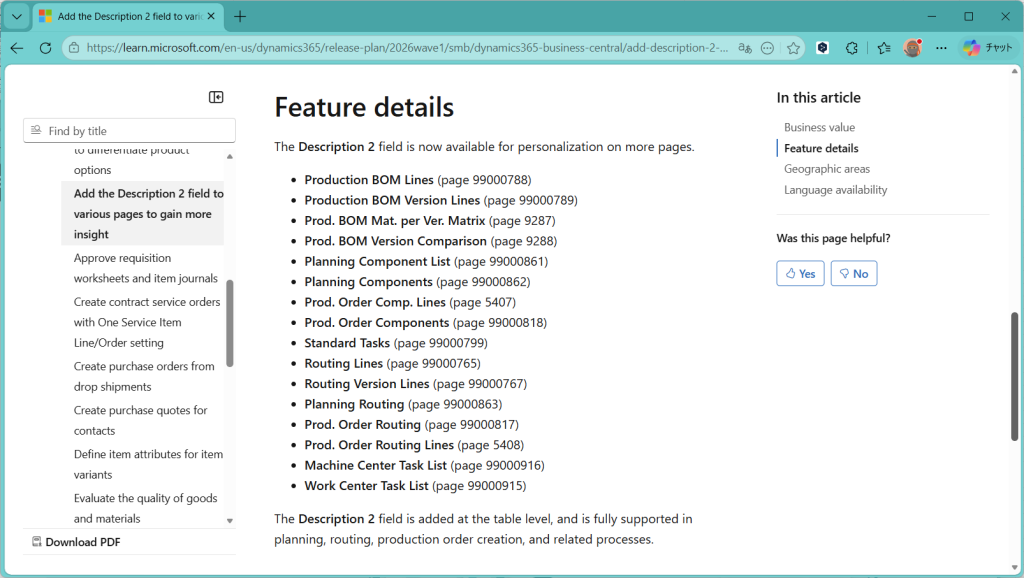 2026 Release Wave 1で各種ページに”説明2”フィールドを定義する機能が追加されましたので、今回はPreview版で機能を調査した結果を紹介します。品目や受発注の明細行などで”説明2”を機能は従来からありましたが、今回の新機能は対象のテーブルやページが拡大されました。