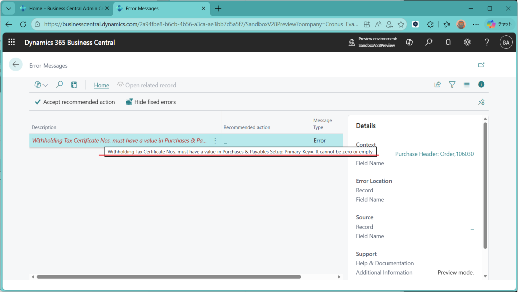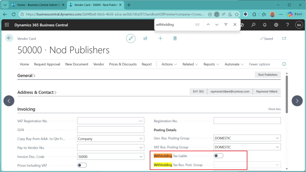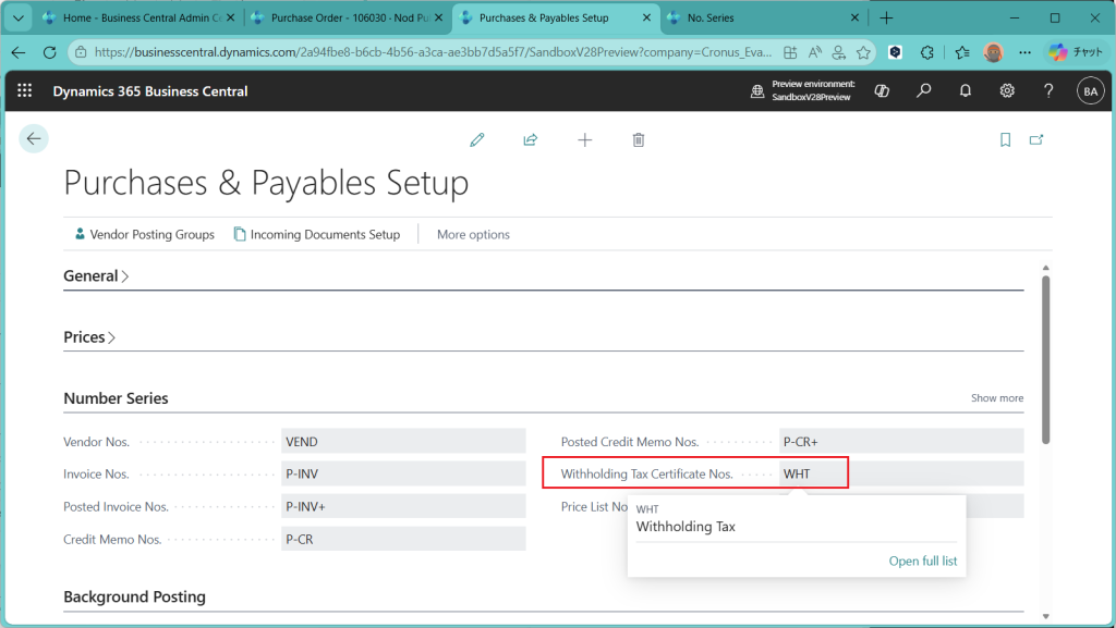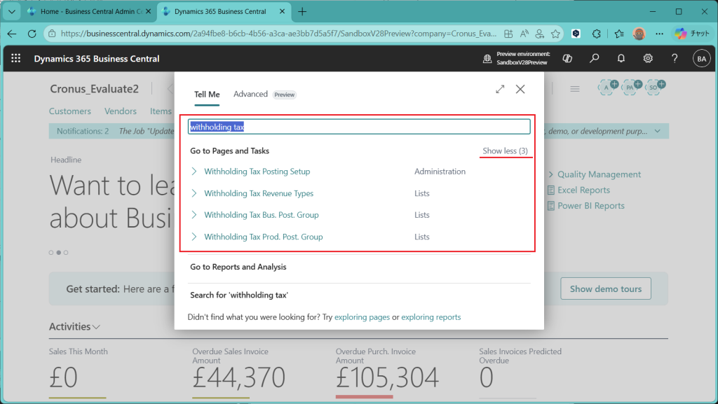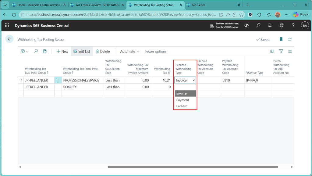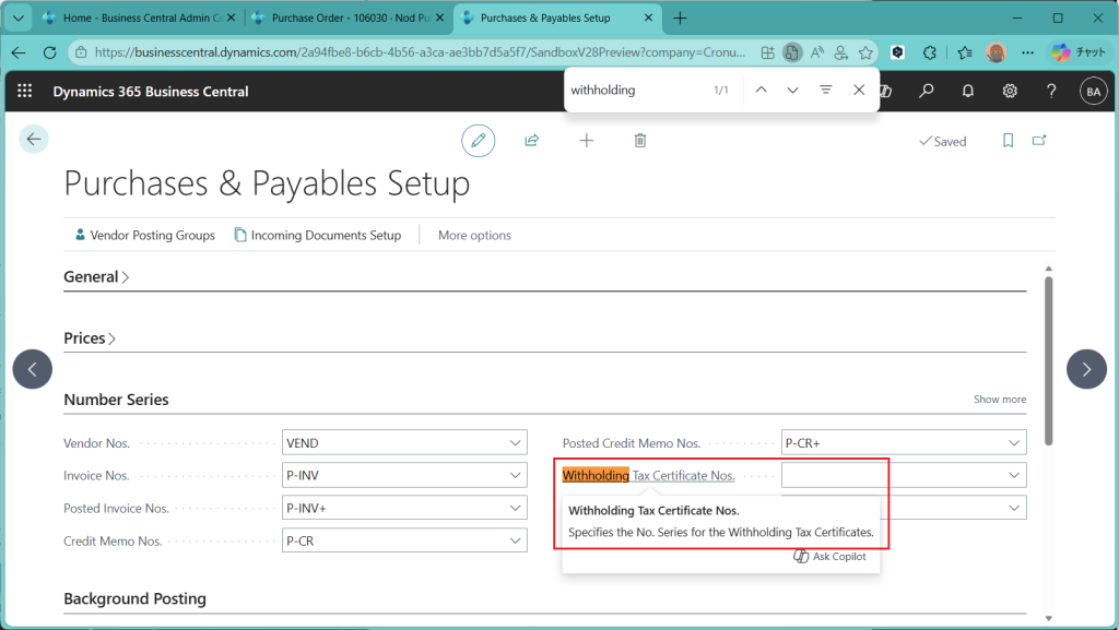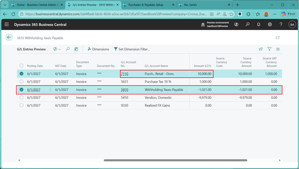 D365BC 源泉徴収税機能(1)