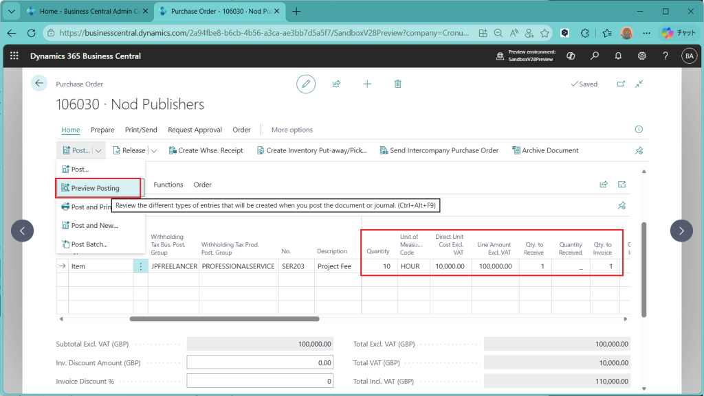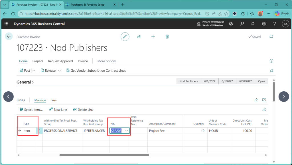 とりあえず、フリーランスのIT技術者にプロフェッショナルサービスを外注できるように1行目を設定しました。日本だと100万円以下は税率10.21%なんだそうです。100万円超えた時には別の税率が適用されますが、今回の新機能で受け止められるのかは次回以降に。(下限金額とシーケンス項目があるので、できそうなきはしています。)