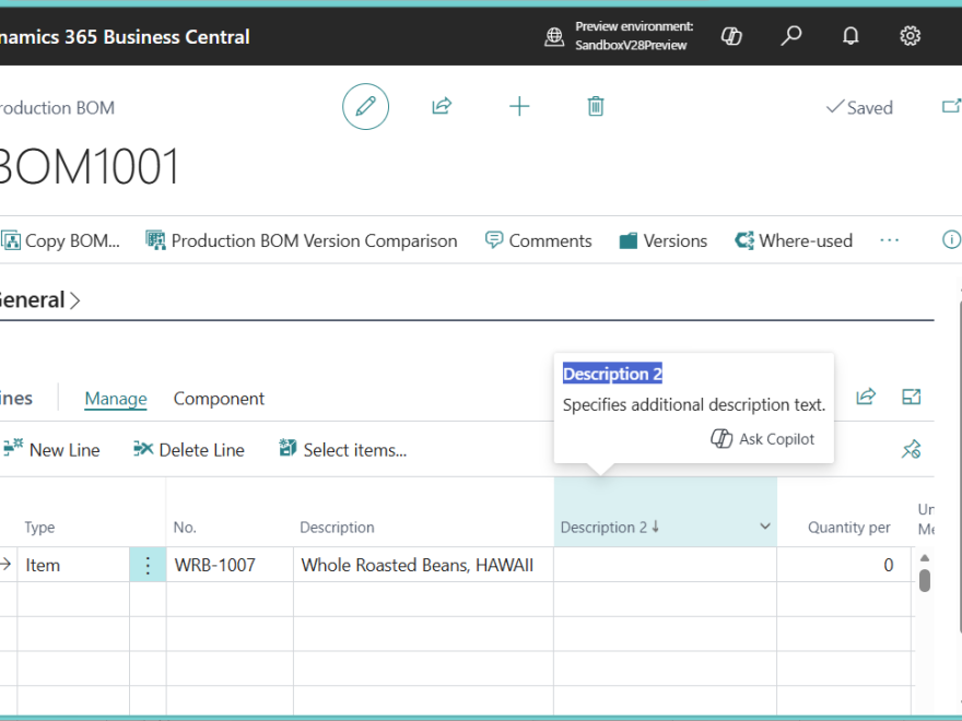 2026 Release Wave 1で各種ページに”説明2”フィールドを定義する機能が追加されましたので、今回はPreview版で機能を調査した結果を紹介します。品目や受発注の明細行などで”説明2”